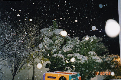 For desert folk, this was a pretty amazing sight. Magical, even. After awhile we filed back into the house and ended up at the kitchen table, sipping hot chocolate and munching on Special K Bars as we enjoyed a scene of continued snowfall. Eventually my dad put his foot down and made us all go back to bed.